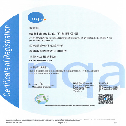 ?熱烈祝賀我司順利通過(guò)IATF16949:2016汽車(chē)行業(yè)質(zhì)量管理體系認(rèn)證!實(shí)佳電子一直秉承為客戶(hù)提供高品質(zhì)產(chǎn)品和服務(wù)的宗旨,自2011年開(kāi)始,我司就已將IATF16949:2016的質(zhì)量標(biāo)準(zhǔn)融入到I......